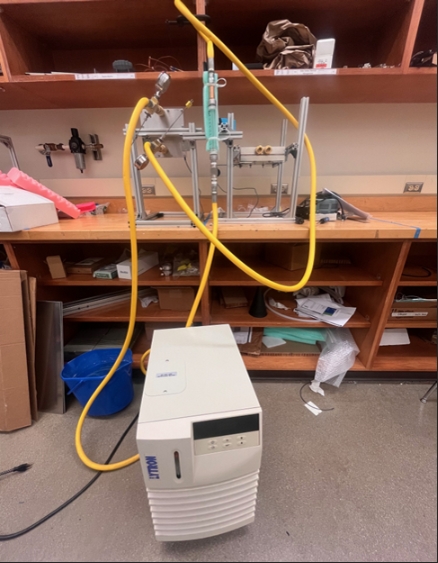 Assembled the flow loop with hoses, pressure gauges, a flow meter, thermocouples, and cartridge heaters
