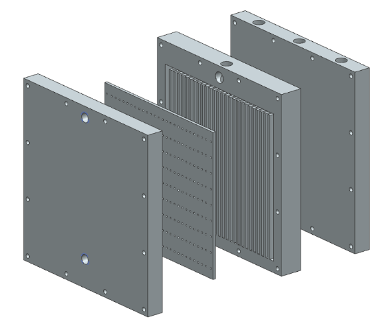 Created CAD models and manufacturing drawings for the heating plate, jet impingement plate, channel plate, and inlet/outlet plate